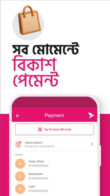 Alami transaksi harian yang pantas dan lancar dengan teknologi QR bKash App. Imbas kod QR di kedai untuk pembayaran pantas, di pusat ejen untuk pengeluaran tunai, atau dengan pengguna bKash lain untuk menghantar wang, semuanya dengan ketepatan tanpa ralat. Selain itu, temui tawaran bKash terbaik yang disesuaikan untuk anda di lokasi berdekatan, semuanya terkumpul di bawah seksyen "Tawaran". Daripada pengisian semula mudah alih untuk semua pengendali utama seperti Robi, Airtel, Banglalink, Grameenphone, dan Teletalk, sehingga pembayaran bil utiliti bulanan anda dari keselesaan rumah, bKash App menyatukan semua keperluan gaya hidup anda. Nikmati kemudahan membeli-belah dalam talian, tiket pengangkutan, dan banyak lagi melalui satu aplikasi serbaguna.