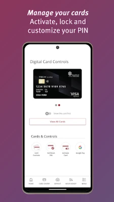 Kawal selia sepenuhnya kad anda dengan ciri-ciri pengurusan yang canggih. Dapatkan akses kepada kad digital anda untuk pembelian dalam talian atau simpan ke dompet mudah alih anda, kunci atau buka kunci kad debit dan kredit anda serta-merta, serta tetapkan makluman SMS untuk memantau transaksi dan had perbelanjaan. Lihat dan tebus ganjaran kad kredit anda dengan mudah, malah pindahkan baki dari kad kredit atau kad gedung lain tanpa kerumitan. Aplikasi Stanford FCU juga menyajikan kejutan menarik seperti skor kredit percuma yang dikemas kini setiap suku tahun, peluang mendapatkan pulangan tunai sehingga 20% daripada jenama kegemaran melalui pembelian kad hadiah, kod promosi unik untuk merujuk rakan bagi bonus tunai, dan pelbagai ganjaran kad hadiah sambil anda meningkatkan kecelikan kewangan. Anda juga boleh menyalurkan sumbangan kepada badan amal kesukaan anda melalui Pusat Pemberian Sumbangan.