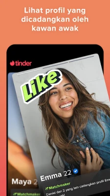 Dikenali ramai sebagai destinasi utama untuk perhubungan digital, Tinder menawarkan cara yang seronok dan mudah untuk bertemu orang baru. Cipta profil yang menawan dengan gambar terbaik anda dan coretan menarik tentang diri anda untuk memikat hati. Prosesnya semudah meluncur jari: leret ke Kanan jika anda terpikat, atau leret ke Kiri jika kurang berkenan. Apabila minat itu berbalas, bermakna anda telah Berpadan! Dengan sistem saling suka-menyukai kami, anda boleh yakin bahawa setiap padanan adalah berdasarkan minat bersama, menghilangkan rasa ragu dan membina asas yang lebih kukuh untuk setiap perkenalan.