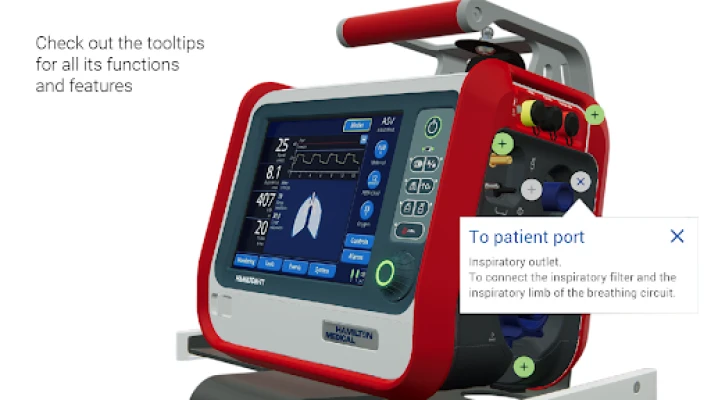 Aplikasi ini juga menyediakan bilik pameran maya interaktif, di mana animasi 3D membolehkan anda meneroka semua model ventilator daripada Hamilton Medical dari setiap sudut, serta mempelajari fungsi dan ciri-cirinya melalui keterangan terperinci, semuanya hanya dengan sentuhan jari. Bagi pengajar dalam bidang pengudaraan mekanikal, VenTrainer merupakan alat yang ideal untuk mencipta pengalaman pembelajaran yang imersif, mudah disediakan, menjimatkan masa dan kos, serta meningkatkan latihan untuk semua pelajar. Pelajar boleh menikmati pengalaman pembelajaran secara maya dengan tangan, sambil mengikuti demonstrasi dan penjelasan teknik pengudaraan anda. VenTrainer berfungsi pada kebanyakan peranti desktop dan mudah alih tanpa memerlukan peralatan tambahan, membolehkan setiap pelajar bereksperimen terus pada peranti mereka sendiri. Aplikasi ini adalah evolusi terkini daripada simulator ventilator Hamilton Medical yang terdahulu, menawarkan pengalaman baharu yang menarik dengan kemudahan aplikasi moden.