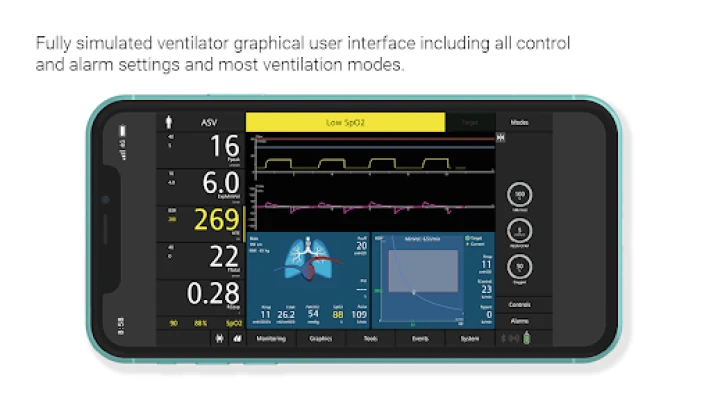 VenTrainer berfungsi sebagai simulator ventilator lengkap di dalam poket anda, menawarkan peluang unik untuk mensimulasikan keseluruhan antara muka pengguna ventilator pada peranti mudah alih atau komputer anda. Anda boleh meneroka setiap fungsi, membiasakan diri dengan operasi ventilator, mempelajari cara mengubah grafik, menetapkan had penggera, menyesuaikan parameter, dan menggunakan pelbagai alatan. Walaupun pesakit di VenTrainer adalah maya, pelajaran yang anda perolehi adalah nyata. Aplikasi ini membolehkan anda melihat hasil langsung daripada setiap keputusan yang dibuat, memupuk kemahiran dan pengetahuan dalam persekitaran yang selamat dan terkawal, di samping sentiasa mengikuti kaedah terkini dalam pengudaraan pesakit. Model pesakit boleh disesuaikan dengan pelbagai keadaan paru-paru, termasuk konfigurasi pra-tetap seperti ARDS dengan ciri-ciri rekrutabel, dilengkapi dengan analisis ABG untuk menyokong strategi pengudaraan anda, pemantauan masa nyata untuk oksigenasi dan pengudaraan, serta penggera yang realistik.