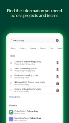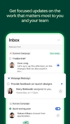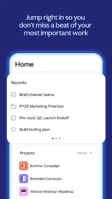 Kerja berpasukan kekal dinamik dengan Asana. Berkomunikasi secara langsung pada tugasan melalui komen, tanda suka, atau lampiran fail, memastikan semua orang sentiasa berhubung. Terima kemas kini automatik mengenai kemajuan projek dan tugasan penting terus ke Peti Masuk anda, tanpa perlu mencari maklumat. Manfaatkan keupayaan lanjutan pada aplikasi web seperti Portfolio untuk gambaran keseluruhan projek yang komprehensif, Bidang Tersuai untuk mengadaptasi butiran tugasan mengikut keperluan unik anda, Paparan Garis Masa untuk memvisualisasikan kebergantungan tugasan seperti carta Gantt, dan fungsi Matlamat untuk menjejaki pencapaian strategik organisasi. Lebih 100,000 organisasi dan berjuta-juta pengguna di seluruh dunia mempercayai Asana untuk memastikan segala-galanya tersusun dan terkawal, didukung oleh kuasa WORK GRAPH™️ Asana yang unik, yang menghubungkan setiap tugasan, projek, dan matlamat dalam organisasi anda untuk integriti, keterlihatan, dan koordinasi yang tiada tandingan.