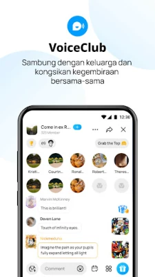 Bukan sekadar alat komunikasi, imo membina komuniti melalui VoiceClub. Cipta atau sertai bilik sembang untuk berhubung dengan kenalan, berkongsi kegembiraan, dan menikmati pelbagai acara langsung seperti pertunjukan bakat, rancangan bual bicara, pertandingan, permainan, dan upacara. VoiceClub menawarkan platform unik untuk ekspresi diri dan interaksi sosial dalam suasana yang menyeronokkan dan inklusif.