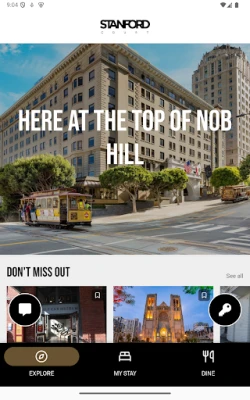 Pengalaman anda tidak terhad di dalam bilik. Aplikasi ini turut menjadi panduan peribadi anda untuk menerokai pesona sekitar, menjemput anda untuk meneroka keindahan Nob Hill dan tarikan ikonik San Francisco. Temui restoran terbaik, lokasi bersejarah, dan permata tersembunyi, semuanya di hujung jari anda. Selain itu, kami menghargai pandangan anda. Berikan maklum balas segera tentang pengalaman anda melalui aplikasi, membolehkan pasukan kami sentiasa menambah baik perkhidmatan untuk memastikan kepuasan maksimum anda. Nikmati penginapan yang lancar, diperibadikan, dan tidak dapat dilupakan, direka khas untuk keselesaan dan kesenangan anda.