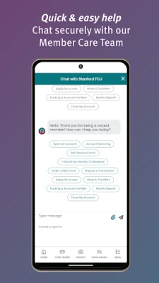 Kawal selia kewangan anda dengan mudah dan penuh kuasa melalui aplikasi mudah alih Stanford FCU yang inovatif. Direka untuk memberikan akses tanpa henti kepada akaun anda, anda boleh menyemak baki semasa, meneliti sejarah transaksi, dan mendapatkan penyata dengan pantas 24 jam sehari, 7 hari seminggu. Uruskan cek dengan efisien, perbaharui sijil anda, dan kemas kini benefisiari. Lebih daripada itu, Stanford FCU memudahkan anda untuk membuka akaun baharu atau memohon pinjaman serta kad kredit terus dari peranti anda, sambil menjamin kemudahan untuk melaporkan sebarang aktiviti yang mencurigakan demi ketenangan fikiran anda.