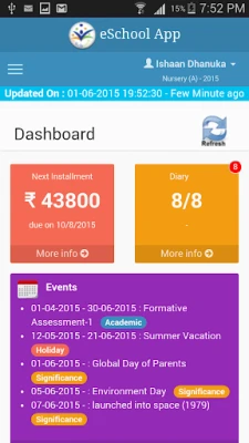 Dengan eSchool, anda tidak akan ketinggalan maklumat penting. Jejak lokasi sebenar bas sekolah anak anda secara langsung pada peta, memberikan keyakinan dan keselamatan. Kekal dimaklumkan serta-merta mengenai kehadiran anak anda di sekolah, dengan notifikasi yang dihantar terus ke peranti anda sekiranya berlaku ketidakhadiran. Ciri Diari Sekolah kini membolehkan anda menerima pekeliling, tugasan, dan pengumuman dengan lampiran PDF atau imej, semuanya tersusun dalam paparan garis masa yang kemas. Bagi ibu bapa yang mempunyai beberapa anak di institusi yang sama, eSchool mempermudahkan anda mengurus dan melihat profil setiap anak dengan mudah dari satu papan pemuka, termasuk akses kepada rekod kelas sebelumnya.