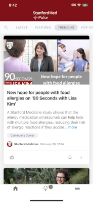 Aplikasi StanfordMed Pulse dari Stanford Medicine menawarkan akses kepada kandungan terkini komuniti. Dapatkan kemas kini masa nyata dan maklumat penting untuk kekal termaklum. Kongsi kisah Stanford Medicine melalui saluran sosial anda.