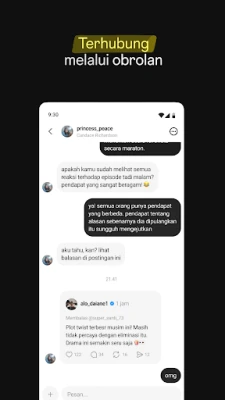 Di **Threads**, anda tidak sekadar memerhati; anda adalah sebahagian daripada perbualan. Berikan balasan yang bermakna, luahkan reaksi anda terhadap komen yang mencuit hati atau maklumat berharga, dan temui kumpulan anda dalam komuniti yang bersemangat. Peroleh inspirasi dan pengetahuan daripada kebijaksanaan ramai, pemimpin pemikiran, dan pakar industri, sama ada anda mencari cadangan siri TV atau nasihat kerjaya. Jangan terlepas trend terkini atau acara langsung; sentiasa dimaklumkan melalui perbincangan dan pemberitahuan apabila profil kegemaran anda memulakan perbualan baharu. Pengguna juga mempunyai kawalan penuh ke atas pengalaman mereka. Sesuaikan tetapan privasi anda untuk mengurus siapa yang boleh melihat kandungan anda, membalas utas anda, atau menyebut anda. Akaun yang disekat di Instagram akan dipindahkan ke **Threads**, dan **Meta** memastikan garis panduan komuniti yang sama diguna pakai untuk memupuk interaksi yang selamat dan tulen untuk semua.